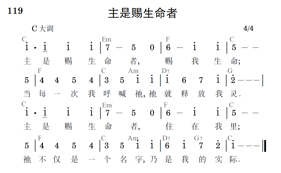主是賜生命者,賜我生命;當每一次我呼喊祂,祂就釋放我靈。主是賜生命者,住在我裡;祂不僅是一個名字,乃是我的實際。