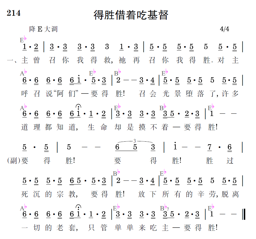 要得勝!要得勝!勝過死沉的宗教,要得勝!放下所有的辛勞,脫離一切的老套,只管單單來吃主——要得勝!