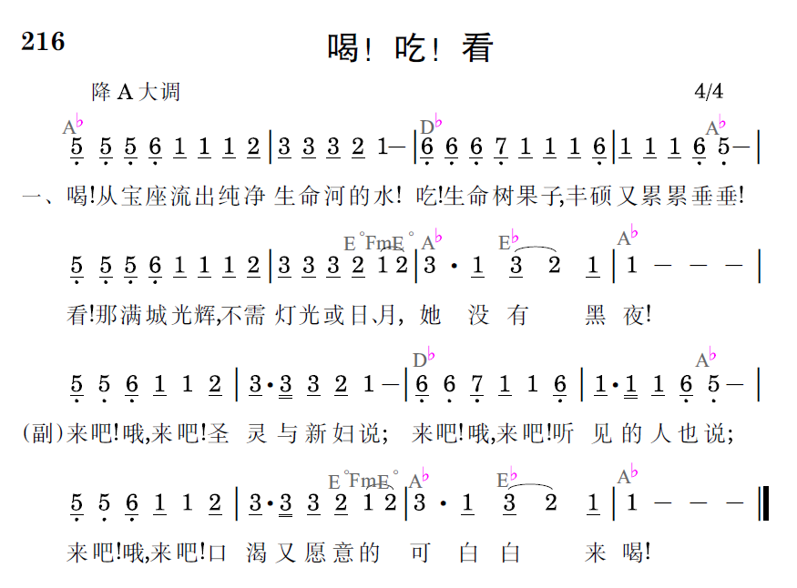 來吧!哦,來吧!聖靈與新婦說;來吧!哦,來吧!聽見的人也說;來吧!哦,來吧!口渴又願意的可白白來喝!