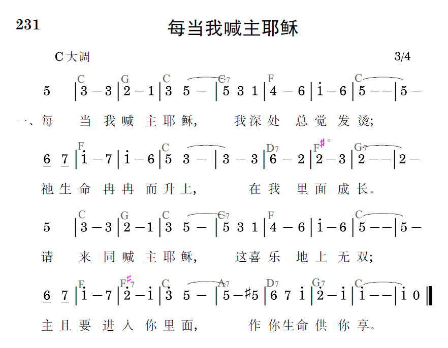 每當我喊主耶穌,我深處總覺發燙;祂生命冉冉而升上,在我裡面成長。請來同喊主耶穌,這喜樂地上無雙;主且要進入你裡面,作你生命供你享。
