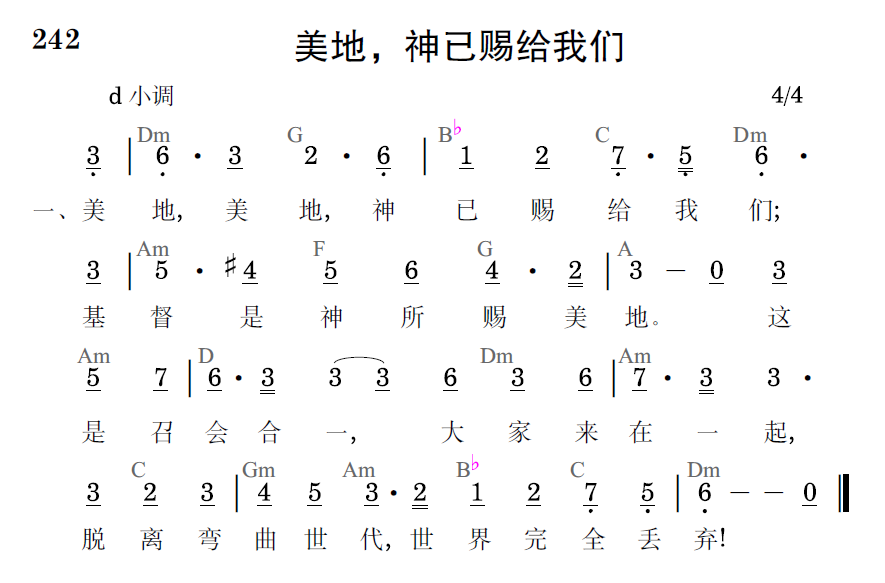 美地,美地,神已賜給我們;基督是神所賜美地。這是召會合一,大家來在一起,脫離彎曲世代,世界完全丟棄!