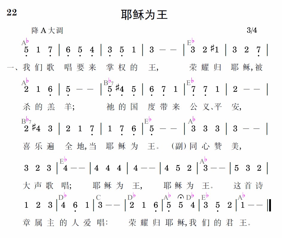 同心讚美,大聲歌唱;耶穌為王,耶穌為王。這首詩章屬主的人愛唱:榮耀歸耶穌,我們的君王。