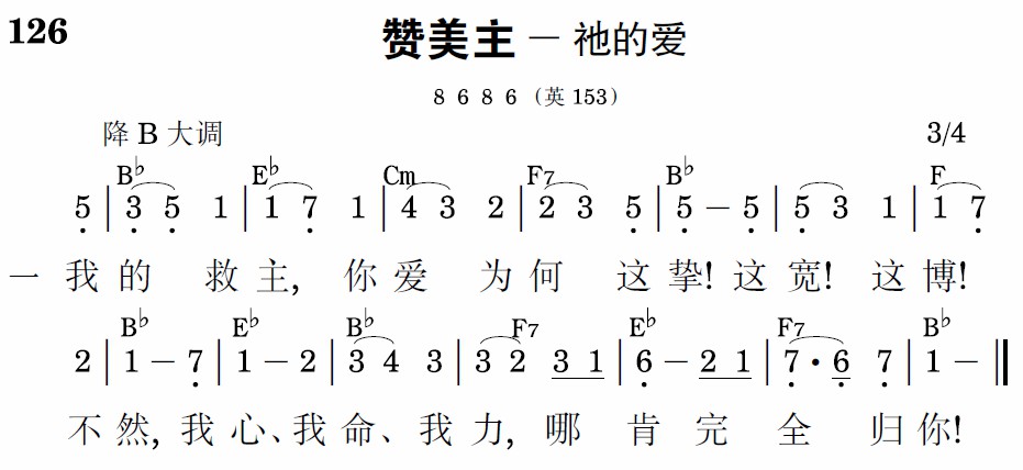 我的救主,你愛為何這摯!這寬!這博!不然,我心、我命、我力,那肯完全歸你!