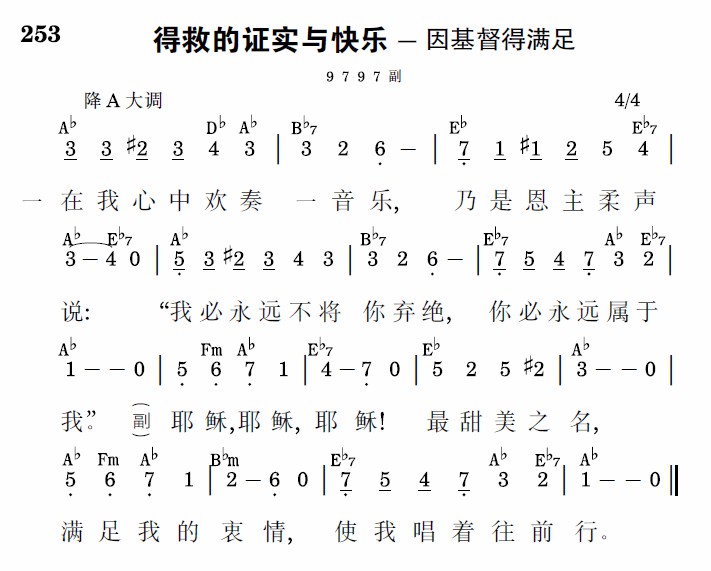 在我心中歡奏一音樂,乃是恩主柔聲說:「我必永遠不將你棄絕,你必永遠屬於我。」