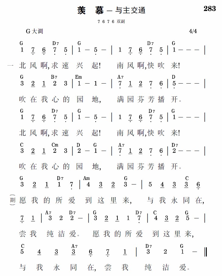 北風啊,求速興起!南風啊,快吹來!吹在我心的園地,滿園芬芳播開。