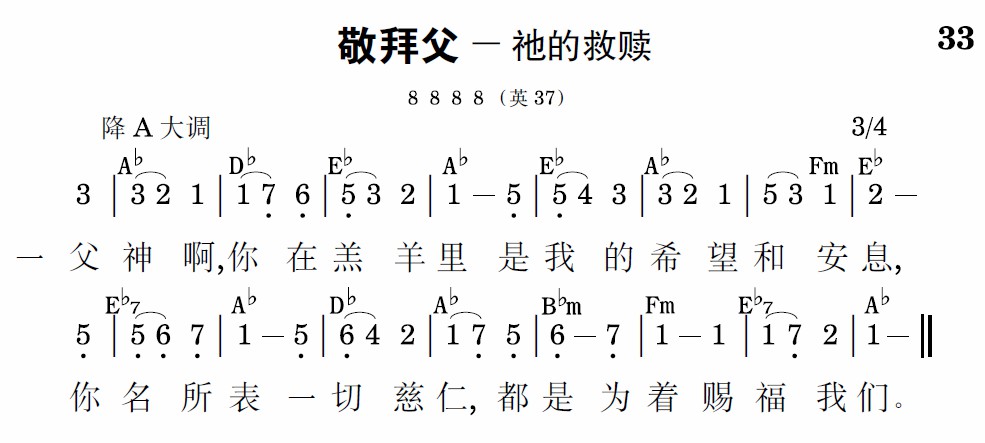 父神啊,你在羔羊裡是我的希望和安息,你名所表一切慈仁,都是為著賜福我們。