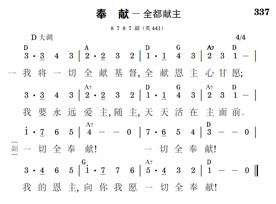 一切全奉獻!一切全奉獻!我的恩主,向你我願一切全奉獻!