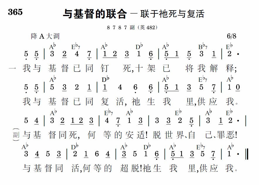我與基督已同釘死,十架已將我解釋;我與基督已同復活,祂生我裡,供應我。