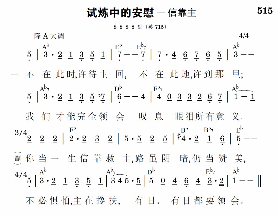 神知我路,手拿它鑰,祂的帶領充滿智慧;有日我眼看見一切,祂在那裡,我必領會。