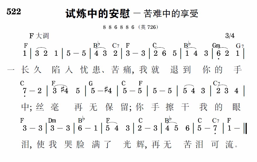 長久陷入憂患、苦痛,我就退到你的手中;絲毫再無保留;你手擦乾我的眼淚,使我哭臉滿了光輝,再無苦淚可流。