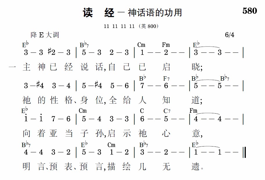 主神已經說話,一切已啟示:說到祂的創造,並說祂降世,說到祂的救贖,並說祂救恩;但願地上萬有,讚美祂不盡。