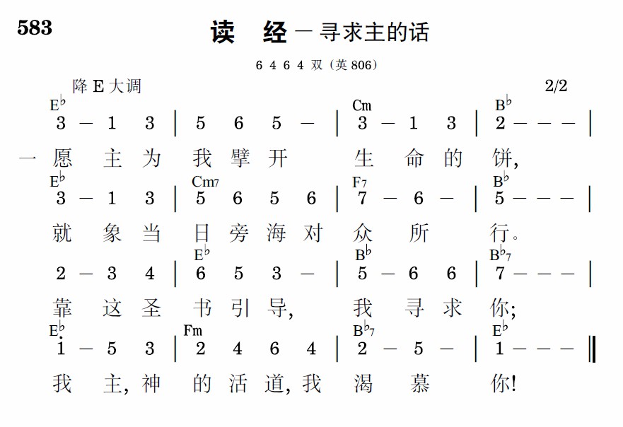 願主為我擘開生命的餅,就像當日旁海對眾所行。靠這聖書引導,我尋求你;我主,神的活道,我渴慕你!