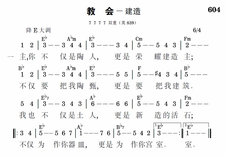 求不再容我單獨,立即來把我建造;一切全照你藍圖,聯絡、結合,精而牢。屬靈不再為自高,恩賜不再為自傲;全都為供你建造,全都為顯你榮耀。