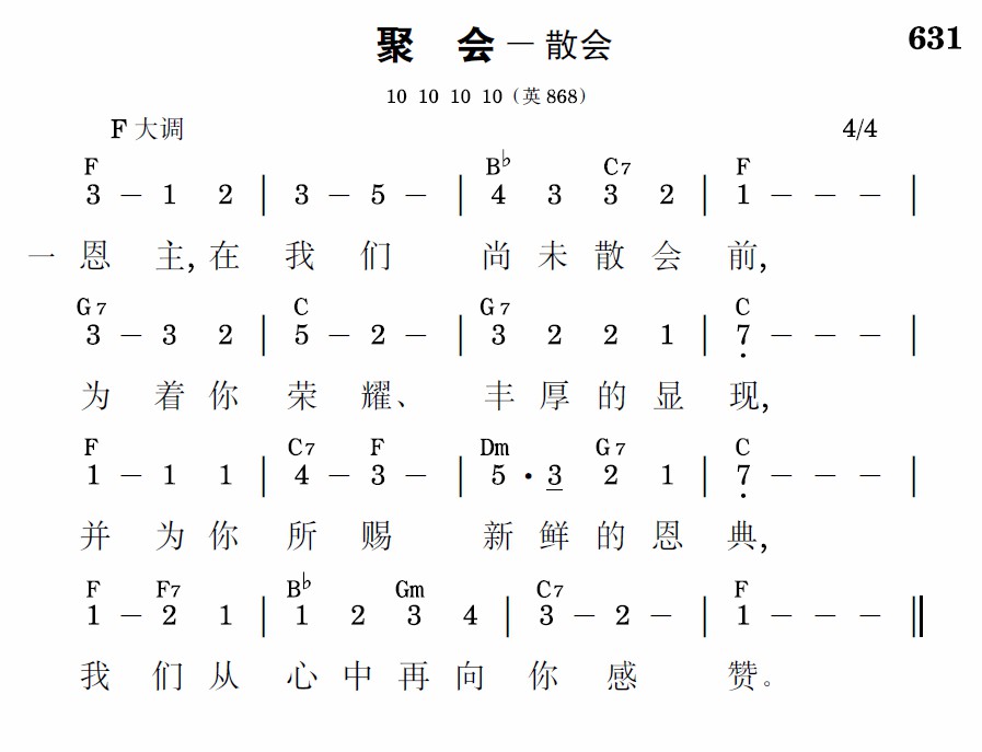 恩主,在我們尚未散會前,為著你榮耀、豐厚的顯現,並為你所賜新鮮的恩典,我們從心中再向你感贊。