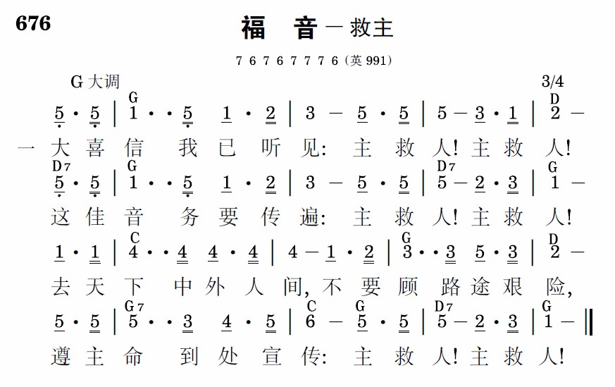 這個是真正福音:主救人!主救人!這個能安慰人心:主救人!主救人!疲睏人可得安息,憂傷人也能歡喜,有罪人不必遲疑:主救人!主救人!