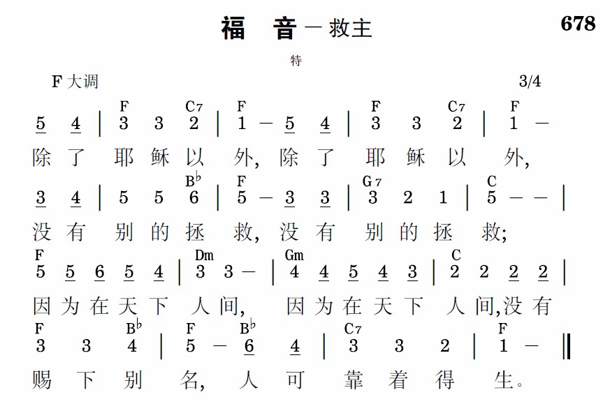 除了耶穌以外,除了耶穌以外,沒有別的拯救,沒有別的拯救;因為在天下人間,因為在天下人間,沒有賜下別名,人可靠著得生。