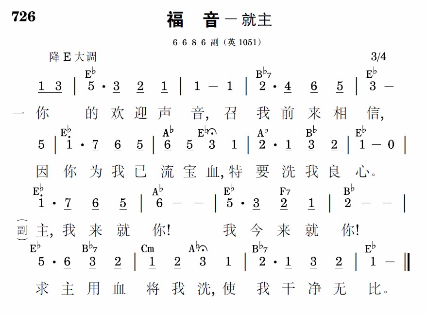 主,我來就你!我今來就你!求主用血將我洗,使我乾淨無比。