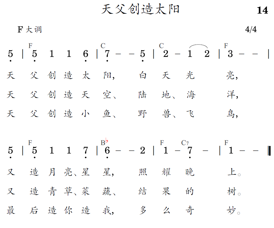 天父創造太陽,白天光亮,又造月亮、星星,照耀晚上。